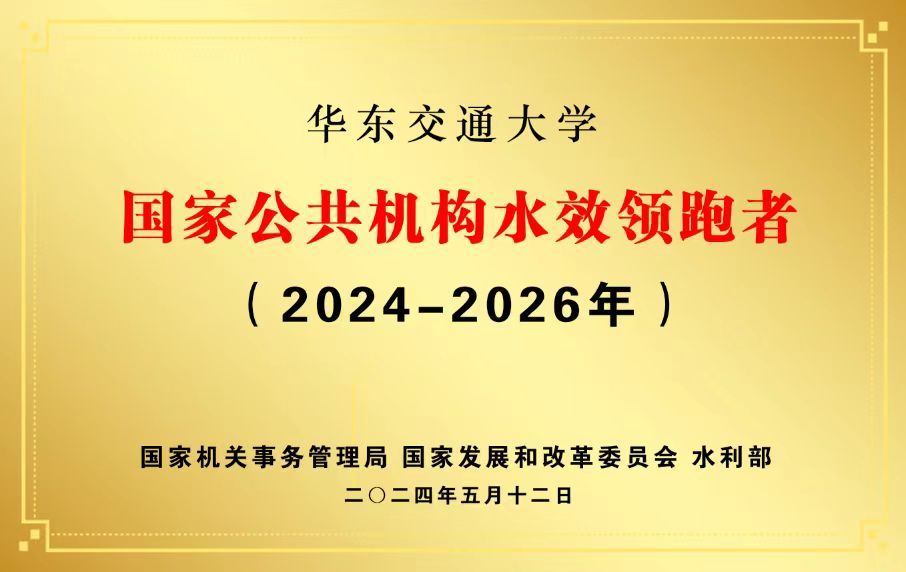 近日,国家机关事务管理局、国家发展和改革委员会、水利部三部门联合公布了(2024-2026年)国家公共机构水效领跑者名单(国内水效领域的最高荣誉),华东交通大学以”江西排名第一、省属高校唯一“强势入选。这是学校深入贯彻党的二十大精神,全面提升水资源节约集约利用水平,充分发挥节水表率作用,继“国家节约型公共机构示范单位”后荣获的又一国家级节能工作殊荣。